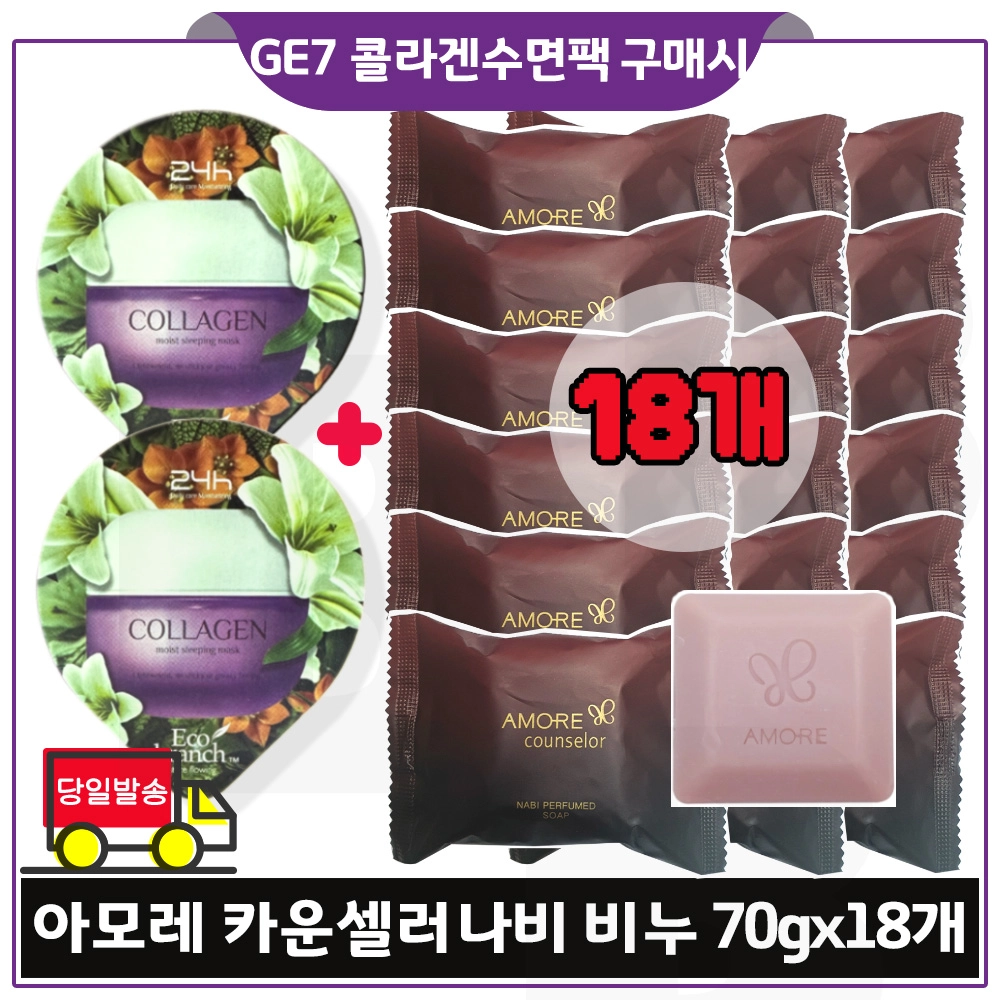 지이세븐 콜라겐 수면팩 2개 구매시 헤라 카운셀러 나비비누 70g x18개