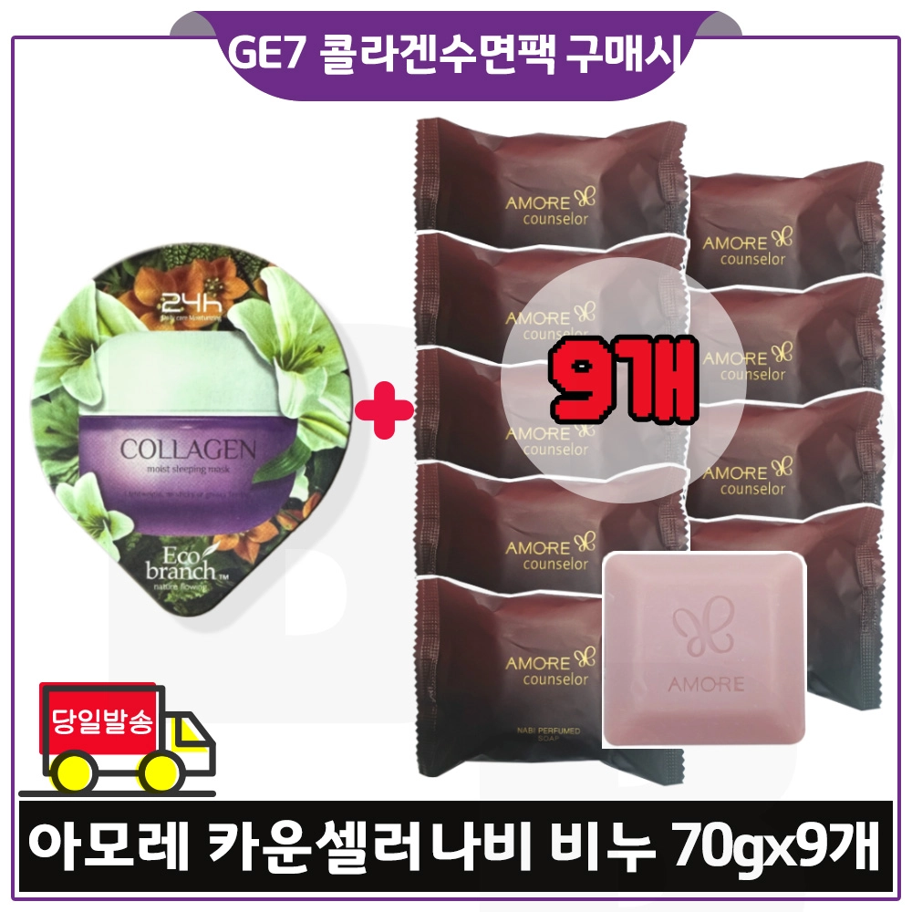 지이세븐 콜라겐 수면팩 구매시 헤라 카운셀러 나비비누 70g x9개