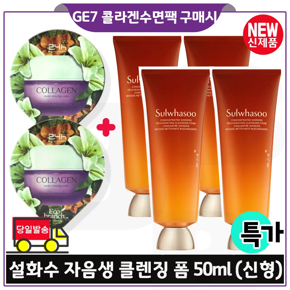 지이세븐 콜라겐 수면팩 2개 구매시 설화수 자음생 클렌징 폼 50ml x4개 (총 200ml) 최신형 6세대 특가