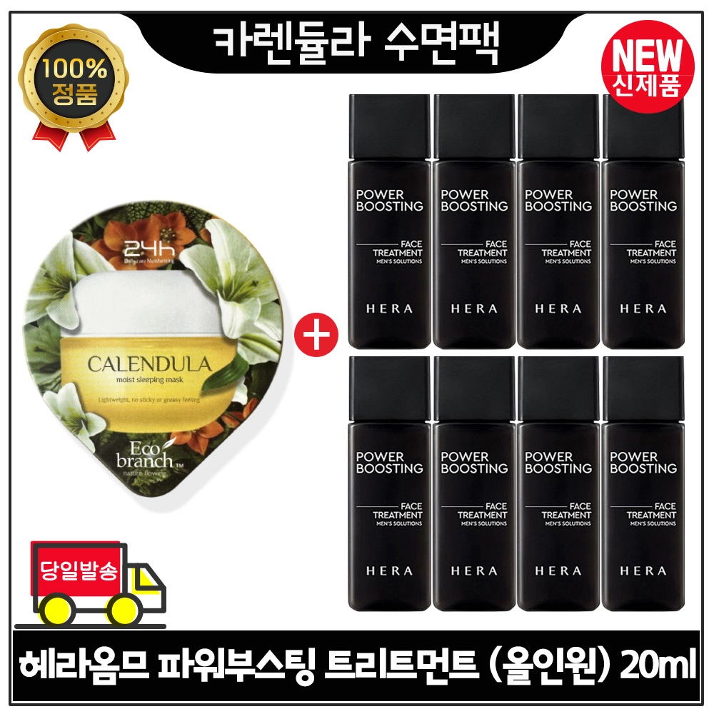지이세븐 카렌듈라 수면팩 구매시 헤라옴므 파워부스팅 스킨+로션2종 각 20ml x4개 (총 160ml) 최신형 6세대