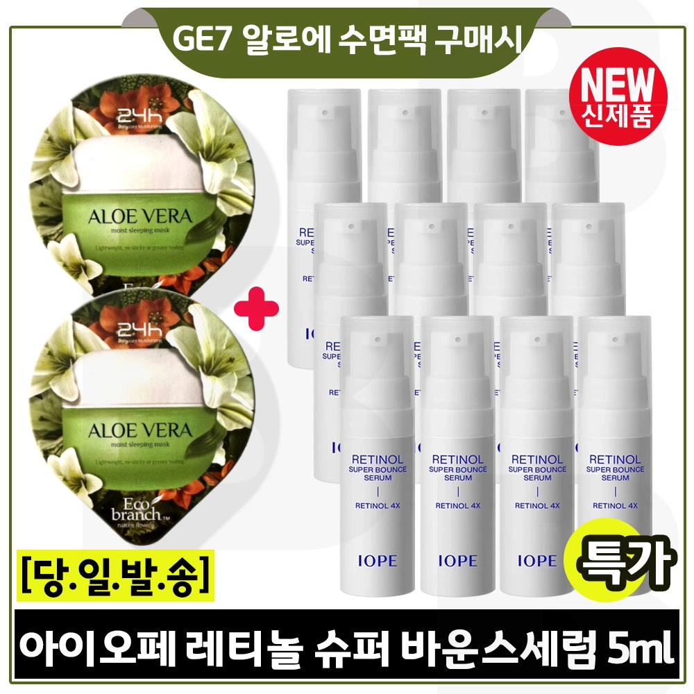 지이세븐 알로에 수면팩 2개 구매시 아이오페 레티놀 슈퍼바운스 세럼 5ml x12개 (총 60ml) 최신형 6세대 (펌핑형)