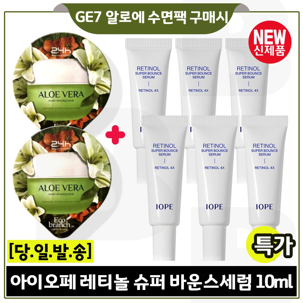 지이세븐 알로에 수면팩 2개 구매시 아이오페 레티놀 슈퍼바운스 세럼 10ml x6개 (총 60ml) 최신형 6세대 (튜브형)