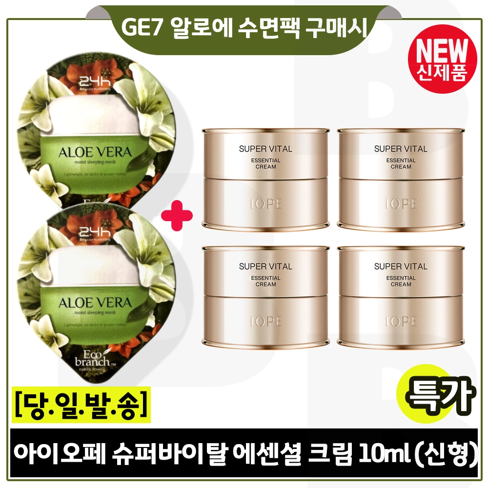 지이세븐 알로에 수면팩 2개 구매시 아이오페 슈퍼바이탈 에센셜 크림 10ml x4개 (총 40ml) 최신형 6세대 특가