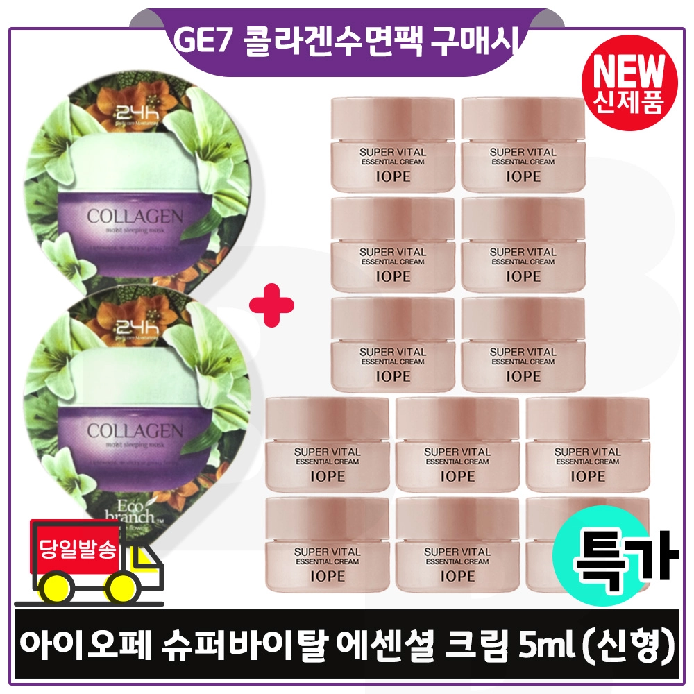 지이세븐 콜라겐 수면팩 2개 구매시 아이오페 슈퍼바이탈 에센셜 크림 5ml x12개 (총 60ml) 최신형 6세대 특가