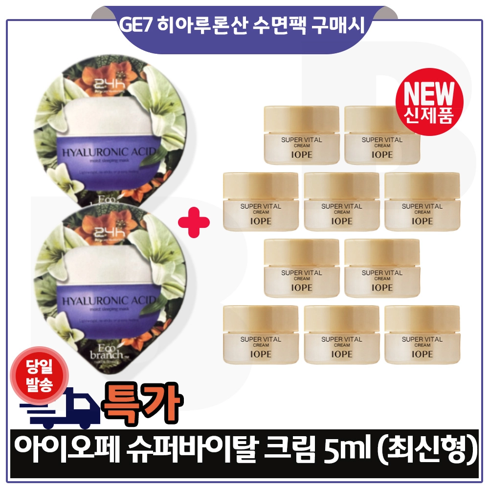 지이세븐 히아루론산 수면팩 2개 구매시 아이오페 슈퍼바이탈 크림 5mlx10개 (총 50ml) 최신형 6세대 특가