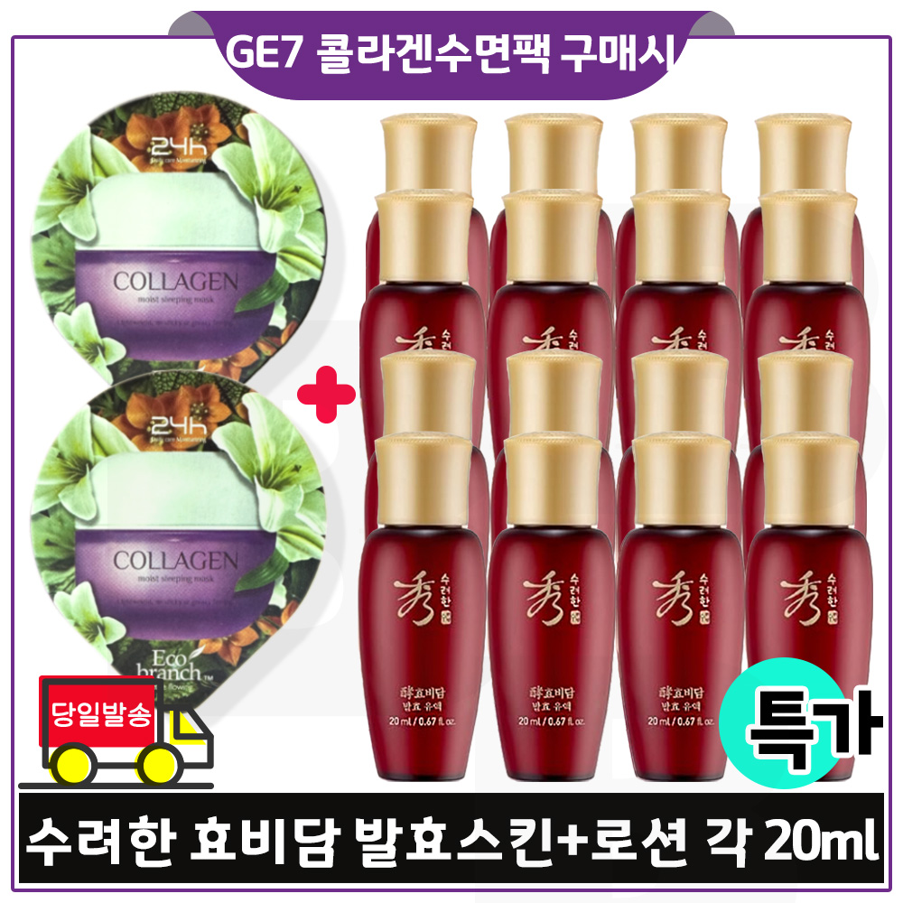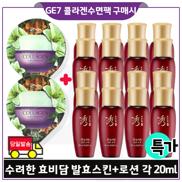 지이세븐 콜라겐 수면팩 2개 구매시 수려한 효비담 발효스킨+로션2종 각 20ml x8개 (총 320ml) 최근생산